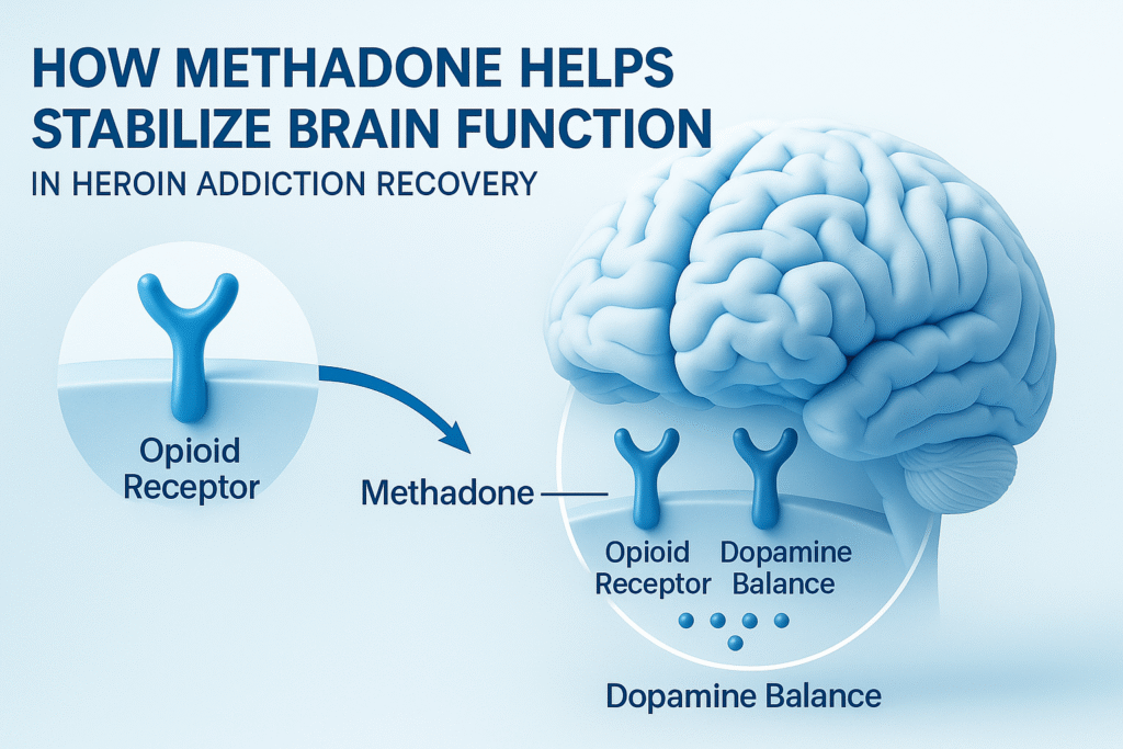 กลไกการทำงานของเมทาโดนคือการ “ครอบครองตัวรับโอปิออยด์” ในสมอง ทำให้สารเสพติดอย่างเฮโรอีนไม่สามารถเข้าจับและออกฤทธิ์ได้อีก ผลลัพธ์คือผู้ป่วยไม่รู้สึกเคลิ้มสุขหากกลับไปใช้เฮโรอีน ซึ่งช่วยตัดแรงจูงใจในการเสพซ้ำได้อย่างมีประสิทธิภาพ